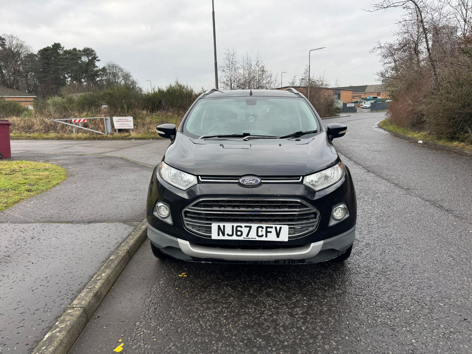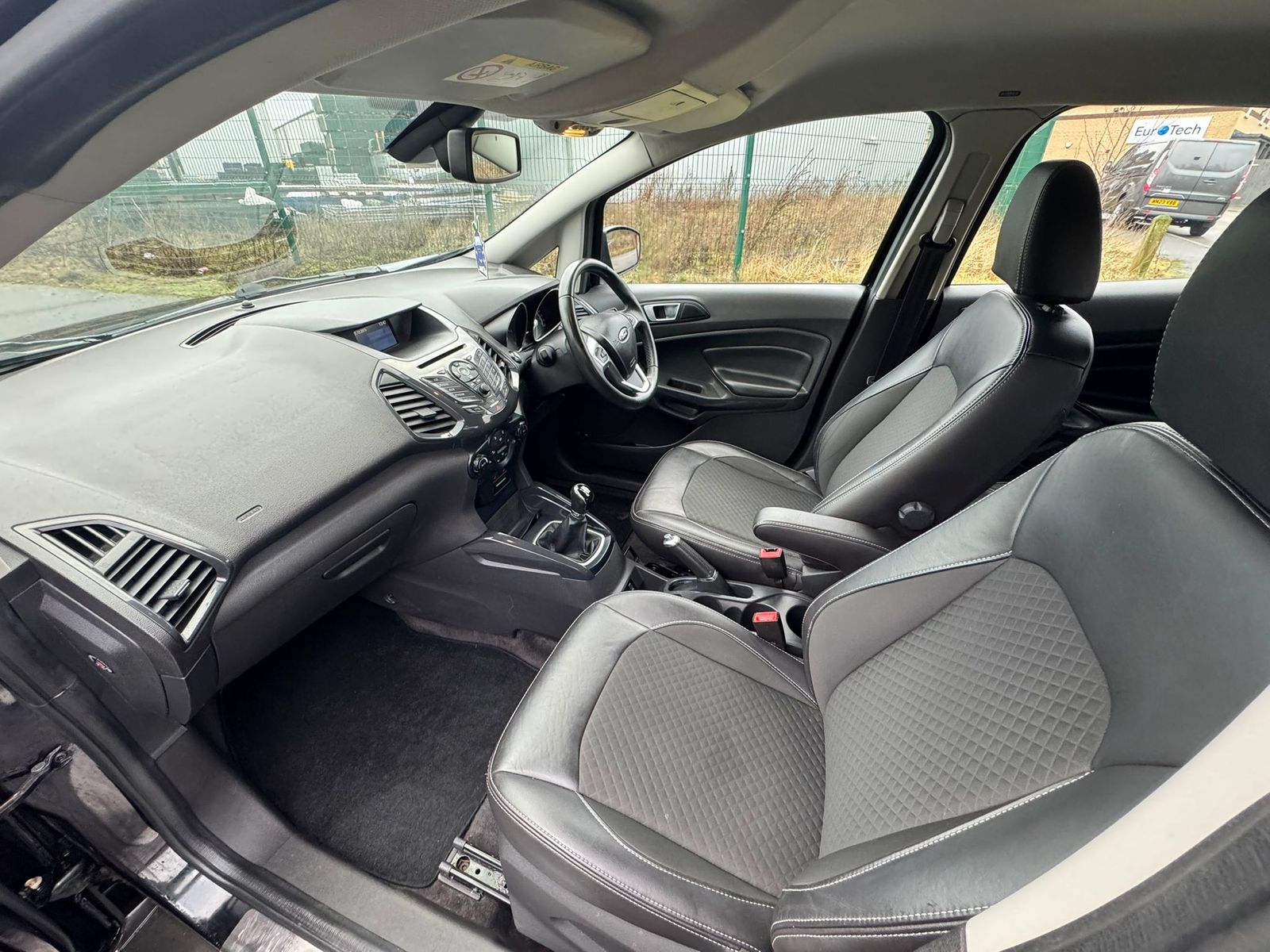 Introducing the Ford EcoSport 1.5 TDCi Titanium in striking black, a compact SUV designed to turn heads and conquer any urban landscape. Its bold front grille and sleek LED daytime running lights ensure you make a lasting impression, while the elevated ride height enhances visibility and confidence on the road. With refined body contours and 17-inch alloy wheels, the EcoSport exudes a sporty yet sophisticated aura, making it an ideal choice for both city dwellers and adventure seekers.