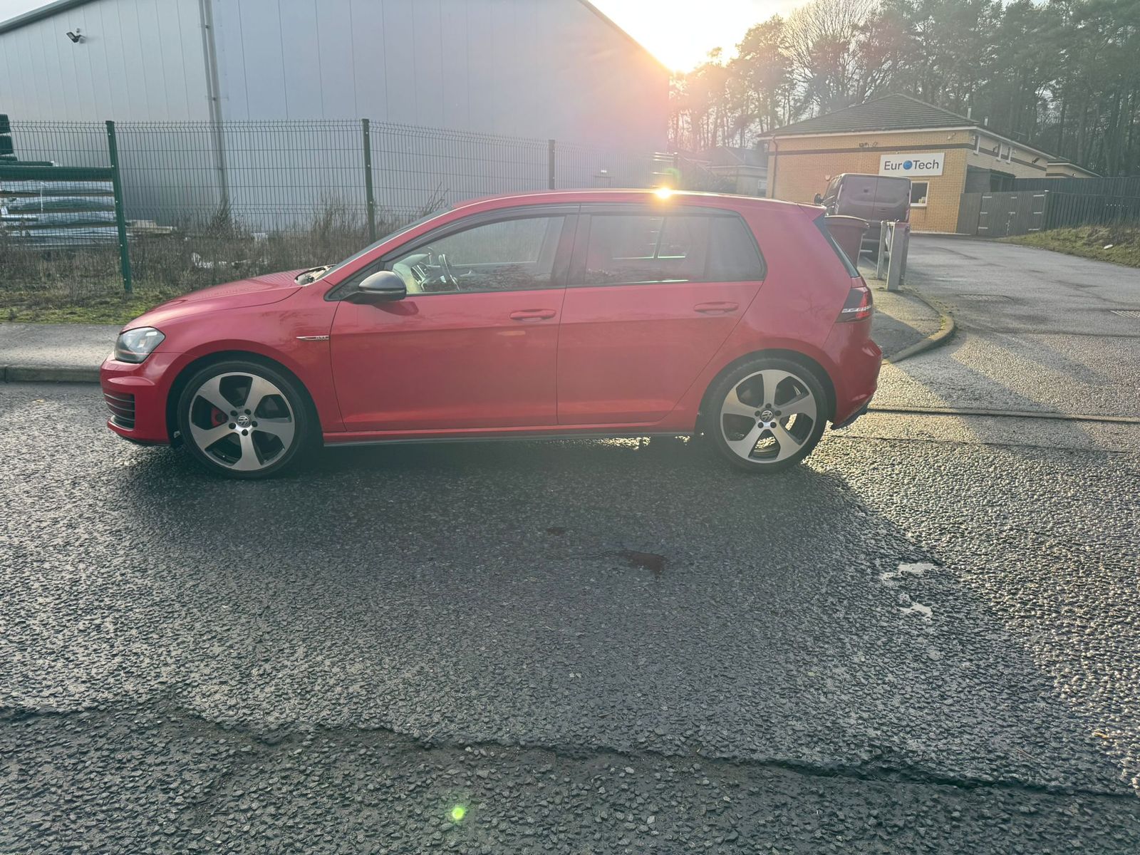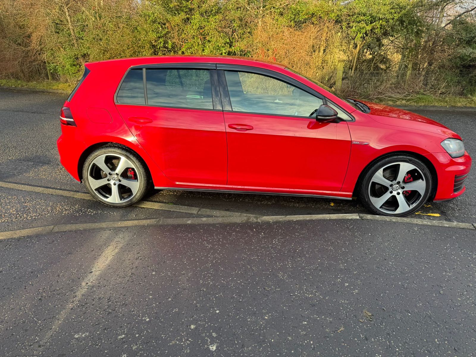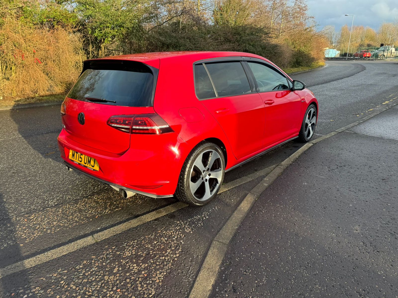Introducing the striking Volkswagen Golf GTI, painted in a vibrant red that commands attention on the road. This 5-door hatchback boasts a sporty, yet sophisticated silhouette, accentuated by iconic GTI styling elements such as the distinctive grille and dynamic LED headlights. The aerodynamic lines and bold alloy wheels not only enhance its aesthetic appeal but also contribute to its exhilarating performance. With its renowned build quality, this model ensures both durability and style, making it an ideal choice for discerning drivers.